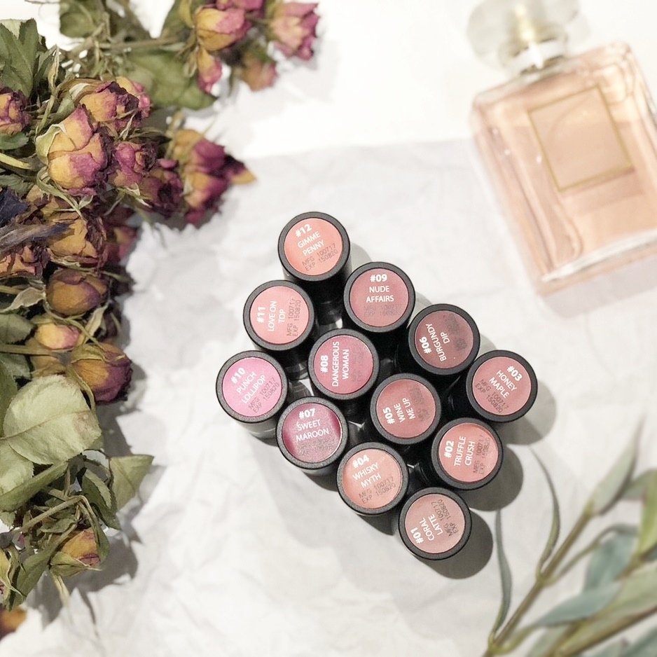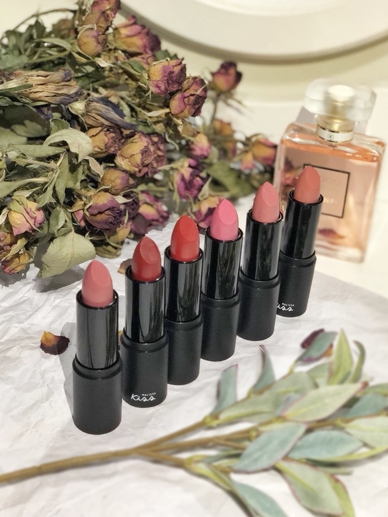 MALISSA KISS霧面絲絨啞光唇膏,有 裸色系#01/#02/#03/#04/#09/#12 ;紅色系#07/#08 ;粉色系#10/#11;酒紅色系#05/#06 ,不管哪一種色系我都超喜歡的,為了不會選擇障礙全部打包就對了。