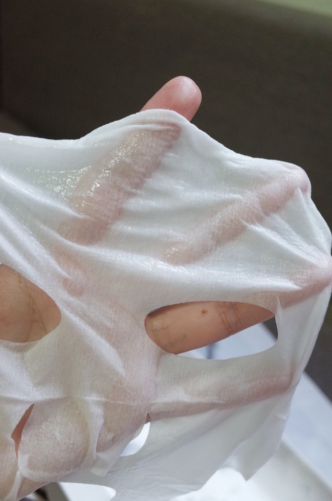 一撕開發現滿滿的精華液,甜蜜覺得很有誠意,而且上次有看到朋友把面膜多的精華液放在保養分裝瓶裡面,它們的面膜精華液也多到可以放到分裝瓶了吧,像我通常敷臉也會把多的精華液拿來抹脖子,脖子也很重要歐,面膜摸起來也很舒服。