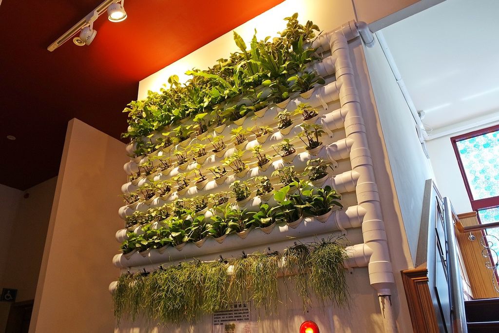 走上來到處都可以看見室內造景綠化植栽牆設計,打造優雅舒適的用餐環境,用餐環境明亮閒適,也是目前台灣地區獨樹一格的特色植物科技餐廳,除了更了解綠科技的重要之外,也能拍出很多很美的照片歐,櫃檯上面是用水耕栽培的百香果真的超酷的,有些客人還會在百香果上面簽名,還蠻特別的,而且二樓還有香草空中花園,種植了許多植物,也可以帶小朋友來這邊看看。